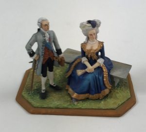 LOUIS XVI et MARIE-ANTOINETTE. DIORAMA. Figurine de plomb, fabriquée par l'atelier VANOT et peinte par Louise LEMOINE, artiste de Rennes.