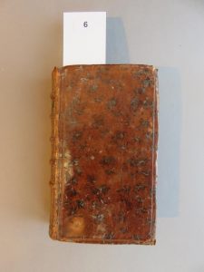1 volume in-12, reliure d’époque en plein veau porphyre, dos à nerfs orné, fleurons dorés, titre doré. Cuir sec, coins émoussés, défauts d’usages. Titre- XXIX pp. 444 pp. 6 ff n.c. Exemplaire correct avec de jolies gardes en papier dominoté. Peu courant.