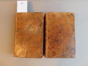 2 volumes in-12, reliure d’époque en plein veau, dos à nerfs ornés de fleurons dorés, pièce de titre en maroquin rouge, verte pour la tomaison. Coiffe en pied du tome 1 arasée et de menus défauts d’usage. Bon exemplaire.