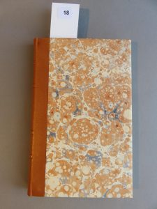 1 volume in-8°, reliure moderne en demi-maroquin havane, dos à nerfs orné avec auteur et titre dorés, plats recouverts de papier à la cuve ivoire gris et havane. Exemplaire propre à toutes marges, couverture conservée, petite mouillure sur les dix derniers feuillets en marge extérieure. 155 pp. dont faux-titre et titre – 2 ff. n. c. (2 ff. du catalogue de la librairie Le Normant).