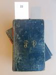 3 volumes petit in-12, reliure d’époque à la bradel en plein papier bleu nuit, initiales dorées sur les plats, dos lisses avec filets dorés, pièces de titre en maroquin rouge. Défauts d’usage, quelques rousseurs, élégante série complète.