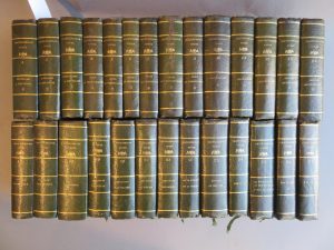 27 volumes in-16 reliure en demi-maroquin vert, petits coins en vélin, dos lisses ornés, auteur, titre et tomaison dorés, filets dorés pour les faux-nerfs. Rousseurs, défauts d’usage. Très rare contrefaçon belge de la première édition collective de Ladvocat. Exemplaire séduisant, non rogné, en reliure du temps dont le premier volume porte l’ex-libris armorié gravé de M. Charles-Ambroise de Caffarelli (1758-1826) administrateur et économiste français.