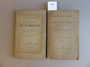 On joint de Léon Maitre, l’instruction dans les villes et les campagnes du comté Nantais avant 1789, Nantes, chez Mellinet, 1882. 1 volume broché, in-8°, 296 pp. défauts à la couverture. Vendu en l’état.