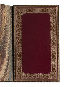 Doublure maroquin bordeaux rehaussé d’une large dentelle et d’un triple filet dorés [Godillot].
