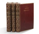 Maroquin rouge de l’époque, triple filet doré en encadrement et supra-libris doré de François Racine de Monville au centre. Dos à nerfs richement orné. Pièces de titre et de tomaison. Double filet sur les coupes. Tranches dorées. Roulette intérieure. Etui moderne.