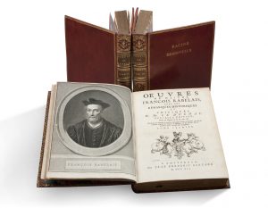 FRANÇOIS RABELAIS (1483-1553) - Œuvres de Maître François Rabelais, avec des Remarques historiques et critiques de Mr Le Duchat. Nouvelle édition ornée de figures de B. Picart &…, Amsterdam, Jean Frederic Bernard, 1741. 3 volumes in-4 (235...