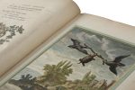 Cette monumentale édition des Fables de La Fontaine est sans doute la plus belle. Dédiée au Roi Louis XV par Louis de Montenault, responsable de l’entreprise, elle est ornée d’un frontispice avec portrait de La Fontaine, du portrait de Jean-Baptiste Oudry et de 275 figures hors texte gravées sur cuivre d’après les lavis d’Oudry.