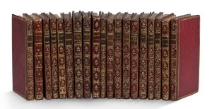 Dos ornés. 17 volumes in-18, maroquin rouge, triple filet sur les plats, pièce de titre olive, dos ornés de filets et fleurons, tranches dorées (Reliure de l’époque).