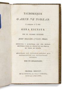 JOSEPH DELGADO HILLO (1754-1801) - Tauromaquia o arte de torear à caballo y à pie. Obra (...) corregida y aumentada con una noticia historica sobre el origen de las fiestas de Toros en Espana. Madrid, imprenta de Vega y compania, 1804. Petit...