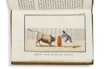 4 ff., 103 pp. et 30 planches hors-texte coloriées d’époque représentant les principales manières de l’art de combattre le taureau.