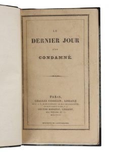 Édition originale, parue sans nom d’auteur, de ce célèbre roman, réquisitoire contre la peine de mort.