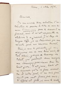 ─ Une lettre autographe signée et datée 6 octobre 1878 d’Émile Zola adressée à un journaliste :