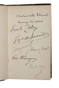 Les Soirées de Médan Emile Zola, Guy de Maupassant, J.-K. Huysmans, Henry Céard, Léon Hennique, Paul Alexis. . P. Charpentier 1880. in-12 (175x115).
