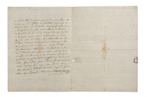 Beaumarchais a conduit sa sœur en Touraine. « J’y ay donné mes soins a mes bois qui exigent des avances enormes et me mettent diablement a l’etroit ; et de la je suis venu par le Bery a Lion d’ou j’ay passé a Beaucaire. J’y ai achetté pour une 40-taine de mille livre de marchandises qui viennent de partir pour Paris. C’est un essay : mais de ma vie je ne crois avoir été si acourt d’argent que je le suis aujourduy toujours prêt a couper la bourse a mes amis ou a tordre celle de mes debiteurs ». Puis il blâme Durand de la façon dont il avait choisi un cuisinier pour l’Espagne :