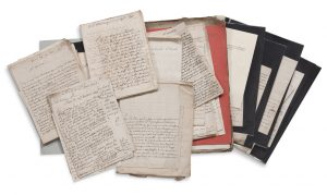 Importante correspondance érudite, concernant les antiquités, les médailles, la littérature, les sciences, etc., citant Descartes, Mme Deshoulières, Leibniz, Galland, Bayle, Moreri, Mabillon, etc. Avec un dessin à la plume d’un sarcophage antique sculpté, et divers documents.