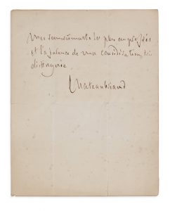 CHATEAUBRIAND FRANÇOIS-RENÉ DE (1768-1848). L.A.S. « Chateaubriand », Paris 10 mai 1834, à un poète breton ; 1 page et demie in-4 (légères fentes).
