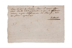 « Reçu de Mr Le Breton pour le meme objet porté dans les billets précédents, et pour le huitième volume, et pour l’explication des Planches ; trois cent livres. A Paris ce [en blanc] Diderot »