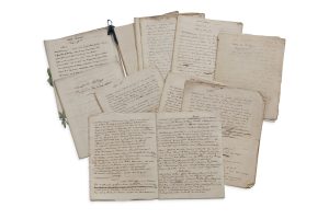 Manuscrit de travail, abondamment raturé et corrigé (95 pages en 5 cahiers, avec compte des vers à la fin des deux premiers cahiers : 446 vers et 334).