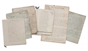 • Cahier de poésies, 1772-1787 (33 pages in-4, avec corrections, notes et additions de Mme de Guibert) : Epitre à Glycère, Élégie sur la mort de Frédéric II, romances, impromptu adressé à Volaire, etc. ; plus 5 feuillets in-4 extraits d’un autre cahier ; et un cahier Recueil de poésies (1760) notamment par Saint-Lambert.