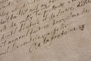 LA FONTAINE JEAN DE (1621-1695). P.A.S. « De la Fontaine », 12 janvier 1656 ; 1/3 page in-8 (7 lignes à l’encre brune).