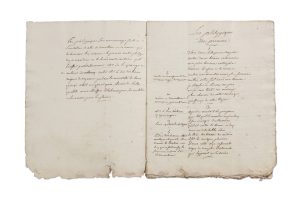 Copie d’époque des odes première à quatrième, avec des notes explicatives. Elle ne fut pas faite d’après la premièreÉdition (1723) qui ne comporte que trois odes, mais plus probablement d’après la deuxième (sans date) qui en donne quatre ; desÉditions ultérieures en ont cinq.