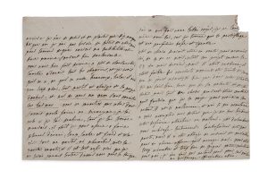 LESPINASSE JULIE DE (1732-1776). L.A., « ce dimanche soir 8 may » [1774], au Marquis de CONDORCET à Ribemont ; 3 pages in-4, adresse avec beau cachet de cire rouge à la devise Sans toi tout homme est seul.