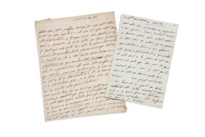 LESPINASSE JULIE DE (1732-1776). 2 L.A., [1775 ?], à Jean-Baptiste SUARD ; 2 pages in-4 avec adresse et cachet de cire rouge aux armes, et 1 page in-8 avec adresse.
