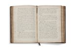 Reliure de l’époque, veau brun, dos à nerfs orné de fleurons à froid, tranches mouchetées (habiles restaurations aux coins et au dos) ; dans une boîte-étui demi-maroquin noir, intérieur gainé de daim violet.