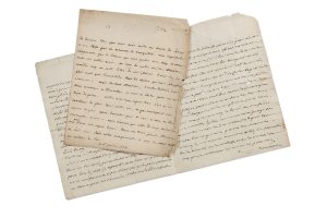 • une L.A. de M. de SÉGUY à Rousseau, 16 janvier 1739, l’enjoignant à ne pas se chagriner si sa destinée le force à revenir à Bruxelles (1 p. in-4, adresse avec cachet de cire rouge à son chiffre, bords un peu effrangés).