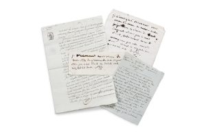 SADE DONATIEN-ALPHONSE-FRANÇOIS, MARQUIS DE (1740-1814). 3 P.A.S. « Sade », Charenton 1808-1812 ; 1 page et demie petit in-4, et 2 pages oblong in-8 et in-12.