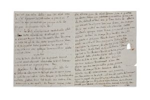 SADE DONATIEN-ALPHONSE-FRANÇOIS, MARQUIS DE (1740-1814). L.A.S. « Sade », [Charenton] 14 janvier 1812, à son avocat Gaspard-François GAUFRIDY à Apt ; 3 pages in-4, adresse (déchirure par bris de cachet avec perte d’un mot ; petite...