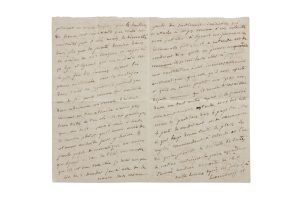 ► Très belle lettre inédite à son amant Louis de Narbonne qu’elle était allée rejoindre en Angleterre et qu’elle vient de quitter, à qui elle dit son amour, et rapporte les nouvelles politiques et militaires de cette période troublée de la Révolution française.