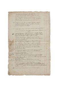 VOLTAIRE (1694-1778). MANUSCRIT autographe, Remarques historiques. Église ; 2 pages grand in-fol. sur les deux faces d’un feuillet de registre comptable (36 x 24 cm ; un peu taché, légères effrangeures, pli un peu fendu).