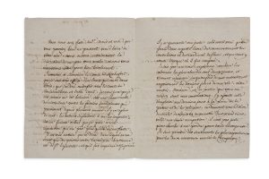 Charmante lettre à de jeunes mariés, les remerciant d’un envoi de champagne, et désavouant son dialogue philosophique Le Dîner du Comte de Boulainvilliers.