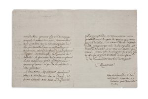 « Mgr le Duc de Praslin sachant que j’avais fondé dans mon village de Ferney une colonie des meilleurs artistes de Genêve en horlogerie, lui accorda toute la protection que les autres ministres lui donnaient. Il commanda qu’on tint prêtes quelques montres, dont je crois qu’il voulait faire des présents aux puissances d’Afrique. J’ose implorer pour cette fabrique utile les mêmes bontés de vôtre part. Nos artistes travaillent d’ordinaire à un tiers meilleur marché qu’à Paris, et plusieurs horlogers même de Paris prennent chez eux des ouvrages auxquels ils mettent leur nom. C’est une chose assez singuliere que ces nouveaux sujets du Roi , qui travaillent dans un village depuis quinze mois, aient déja fourni assez amplement l’Espagne, Constantinople, la Russie et la Hollande. Ils font entrer de l’argent en France, ils ont vivifié une petite province aussi pauvre qu’ignorée, et par là ils méritent votre proteection »...