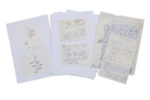 BARTHES ROLAND (1915-1980). NOTES autographes, et 2 dessins originaux ; 19 pages formats divers.