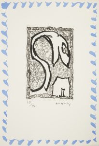 Celui-ci est l’un des 90 comprenant une suite de 5 eaux-fortes originales avec rehauts d’aquarelle appliquée au pochoir en encadrement, numérotées et signées par l’artiste sur papier vélin d’Arches (n° 70).