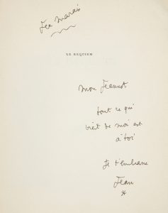 COCTEAU (Jean). Le Requiem. Paris : Gallimard, [1962]. — In-4, 235 x 185 : 173 pp., (3 ff. dernier blanc), couverture imprimée.