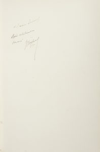 Exemplaire sur papier vélin à la forme, non numéroté, enrichi de cet envoi de l’auteur :