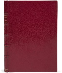 Maroquin rouge janséniste, dos à nerfs, encadrement de maroquin rouge à l’intérieur, orné de filets dorés, doublures et gardes de soie moirée bleu nuit, tête dorée, non rogné, couverture conservée, étui (Canape).