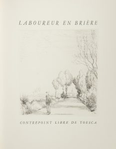 [LABOUREUR (Jean-Émile)] - TOESCA (Maurice). Laboureur en Brière, contrepoint libre de Toesca. [Nancy : Beaux Livres - Grands Amis, 1959]. — In-4, 300 x 244 : 63 pp., (3 ff. dernier blanc), couverture imprimée.