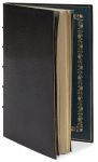 Maroquin bleu nuit janséniste, dos à nerfs, doublures de maroquin bleu de prusse bordé d’un filet doré et orné d’un encadrement de roses dorées et mosaïquées de maroquin blanc, gardes de soie bleu nuit, doubles gardes, tranches dorées sur témoins, couverture et dos conservés, étui (Joly fils).