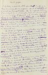 Le manuscrit est abondamment raturé et corrigé, avec des passages biffés, et des béquets ajoutés ; les pages sont remplies de la minuscule et fine écriture de Bainville, à l’encre violette, sans marge, au recto de feuillets papier blanc, chamois, violet, jaune ou vert d’eau, certaines parties écrites au dos de papier à l’en-tête de