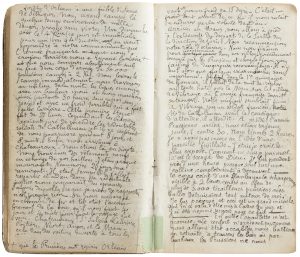 Carnet de la guerre de 1870, alors que Bloy est mobilisé dans la Garde nationale ; le carnet sera utilisé pour les contes de Sueur de sang.