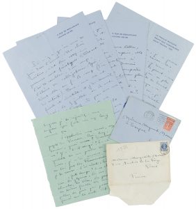 COLETTE (1873-1954). 4 L.A.S. « Colette », Paris et Saint-Tropez mars-décembre 1928, à Marguerite MORENO ; 12 pages in-4, la plupart sur papier bleu à ses adresses, et une carte oblong in-12, enveloppes.