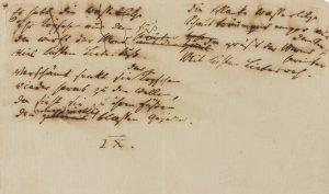 HEINE Heinrich (1797-1856). MANUSCRIT autographe de premier jet d’un poème ; 1 page oblong in-8 (légère mouillure) ; en allemand.