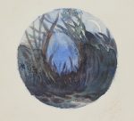 Les dix aquarelles d’Albert BESNARD (1849-1934) sont toutes signées du monogramme, dont trois à pleine page ; les autres compositions, de format rectangulaire ou circulaire (diamètre de 7,3 cm) semblent avoir été disposées en vue d’une publication. Elles sont d’une grande beauté ; on admirera notamment les délicates nuances de bleu, que l’on retrouve également dans l’émail qui orne la reliure.