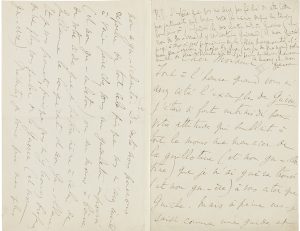 Il ajoute en haut de la lettre : « J’espère que vous ne serez pas fâché de cette lettre, mes sentiments sont toujours restés les mêmes depuis les temps lointains où j’attendais chez vos clientes Me de Guerne (et non de Gu-erne) et y rencontrais Guiraud (et non Guiraud) jusqu’à Aix où nous nous promenions dans les Allées Marguerite et non gu-erites. A propos de Gue (non pas de guenon) votre ami M. de Seré de Rivière n’a-t-il pas perdu son rêve Gueneau de Mussy et non Gueneau ».