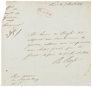 STENDHAL (1783-1842). P.A.S. « De Beyle », Paris 7 avril 1814 ; 1 page petit in-4.