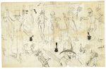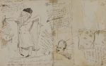 Important ensemble de dessins originaux de Verlaine, avec des lettres et manuscrits illustrés de dessins.